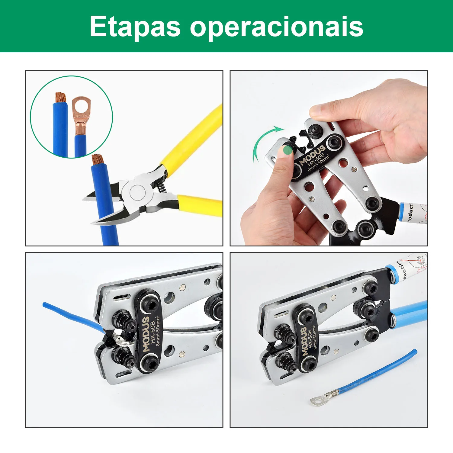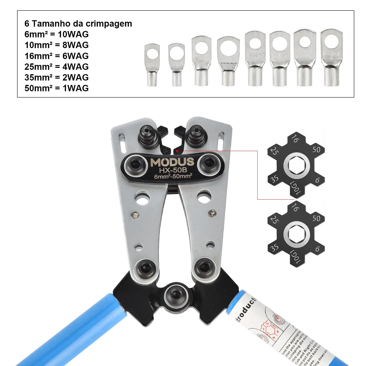 Tubo de Crimpagem Alicates Set 6-50mm ²/AWG 10-0 Terminal Tubo Crimper Hex Crimp Tool com 60pcs Terminais Cabo de Bateria Lug Cabo Ferramentas