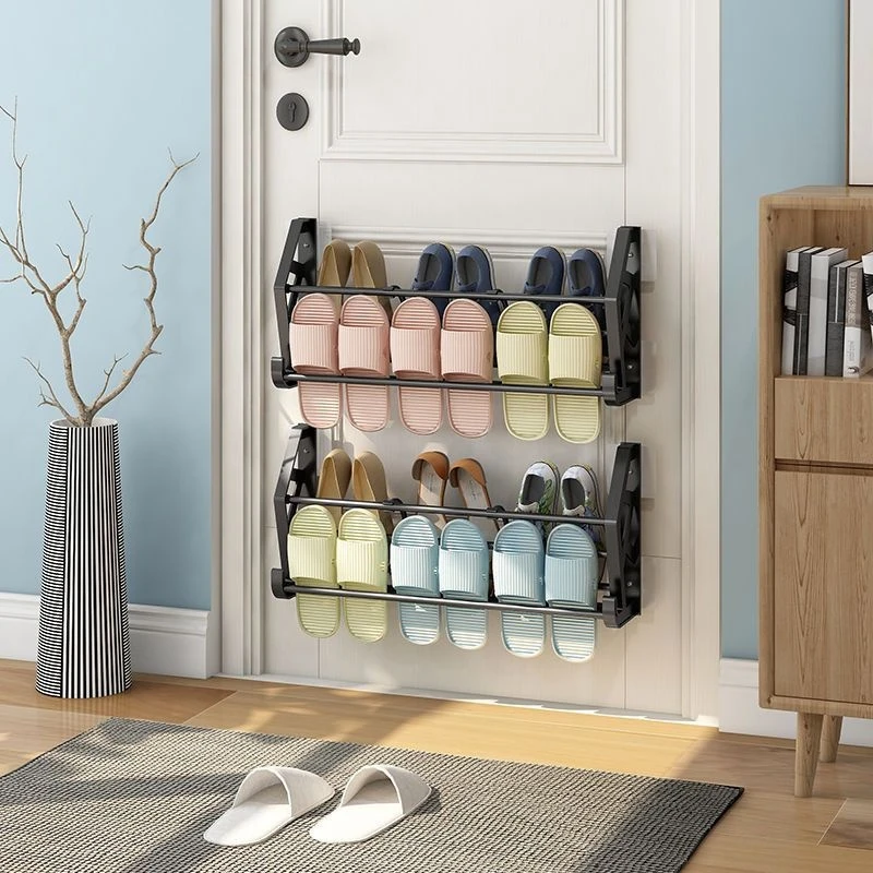 A sapateira de rack sobre a porta é fixada à parede por um adesivo muito forte. Você simplesmente precisa limpar a parede antes da instalação, remover a película protetora do adesivo sem pregos e colocar o organizador de sapatos. Sem perfuração e não machuca sua parede.